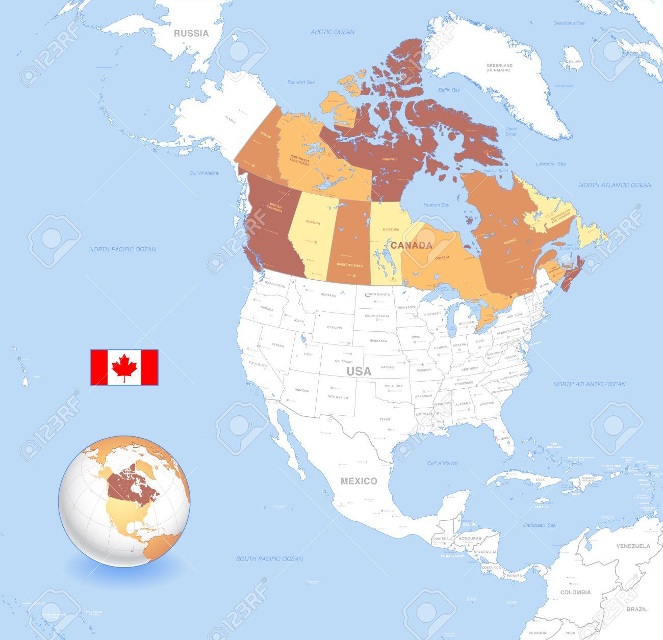 Kanada Globus anzeigen. Atlas Landkarte von Kanada (Nordamerika - und Südamerika) zu drucken. Atlas Landkarte von Kanada (Nordamerika - und Südamerika) zum download bereit.